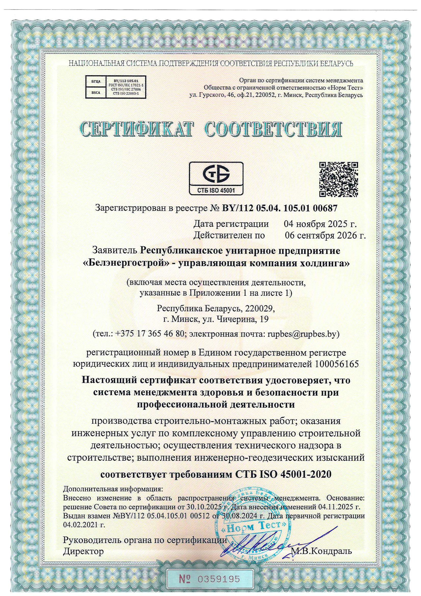 В рамках «Плана мероприятий по совершенствованию структуры управления организациями, входящими в систему Министерства энергетики Республики Беларусь», утвержденного Министром энергетики нашей страны, создано объединение юридических лиц – холдинг «Белэнергострой холдинг», который 17 декабря 2019 года зарегистрирован Министерством экономики в Государственном реестре холдингов за номером 124. Участниками холдинга «Белэнергострой холдинг» являются следующие юридические лица: