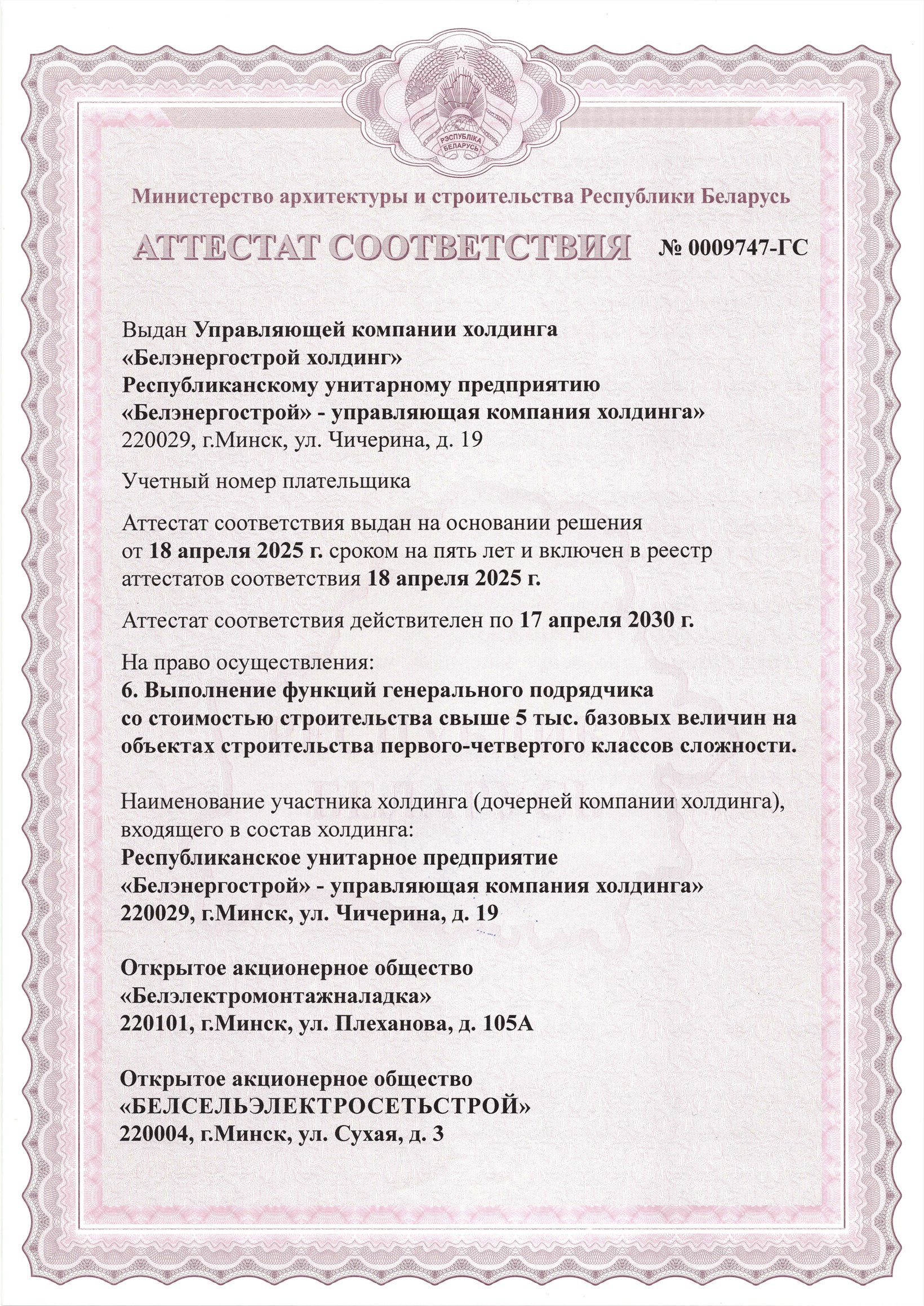 Республиканское унитарное предприятие «Белэнергострой» - управляющая компания холдинга»,