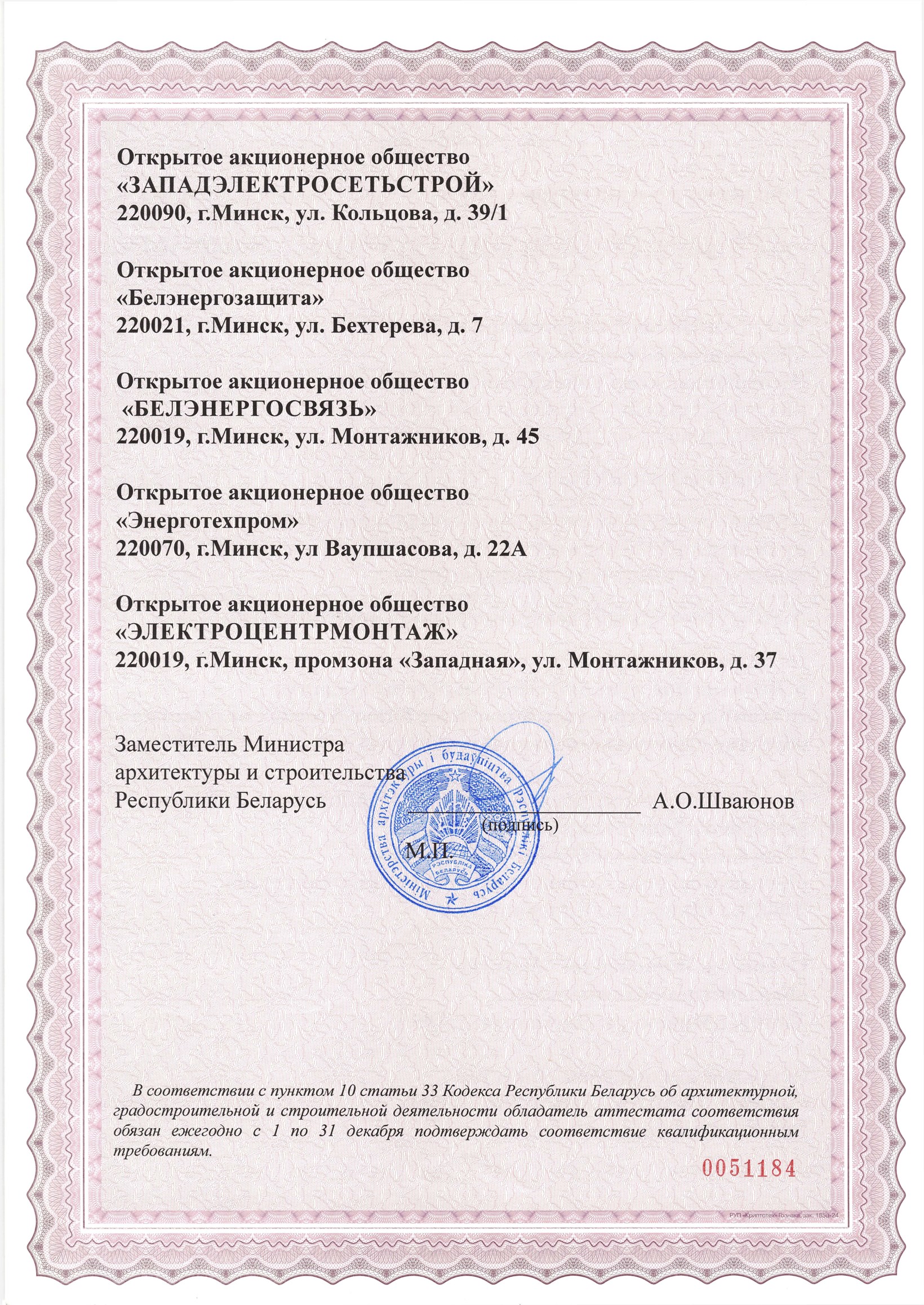 Большой опыт работы наших специалистов и за рубежом. При непосредственном участии РУП «Белэнергострой» были построены энергетические объекты, жилые поселки в Иране, Ираке, Греции, Монголии, Германии, Чехии и других странах.