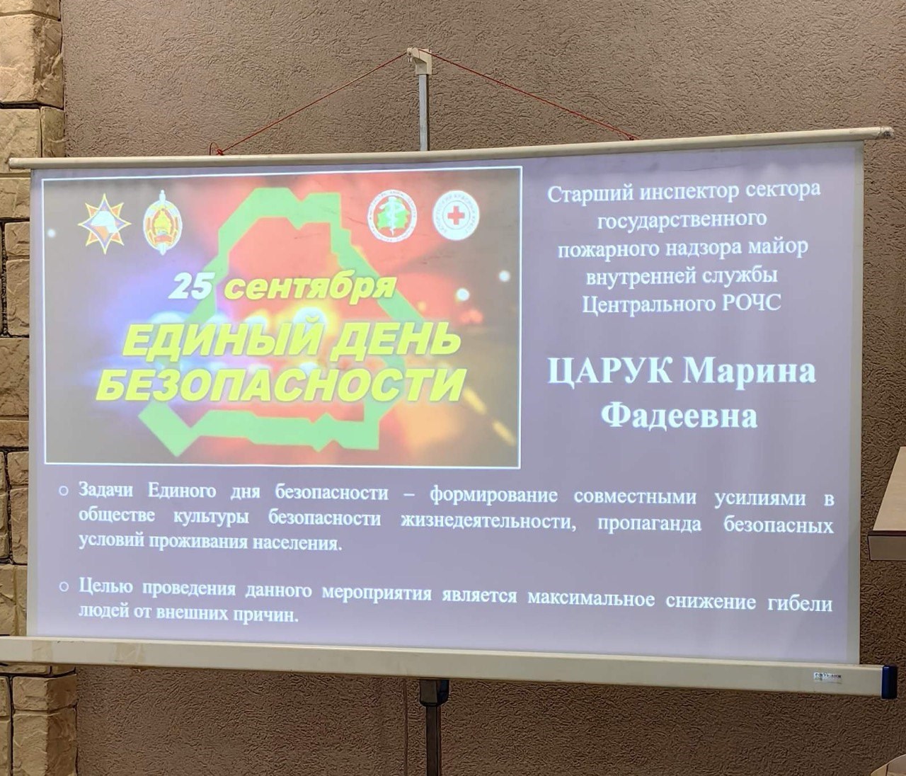 После практической части была теоретическая. Старший инспектор сектора государственного пожарного надзора майор внутренней службы Центрального РОЧС Марина Царук рассказал об основных причинах, которые приводят к пожарам. Напомнила также правила безопасности, соблюдение которых спасёт не только имущество, но и нередко жизнь.