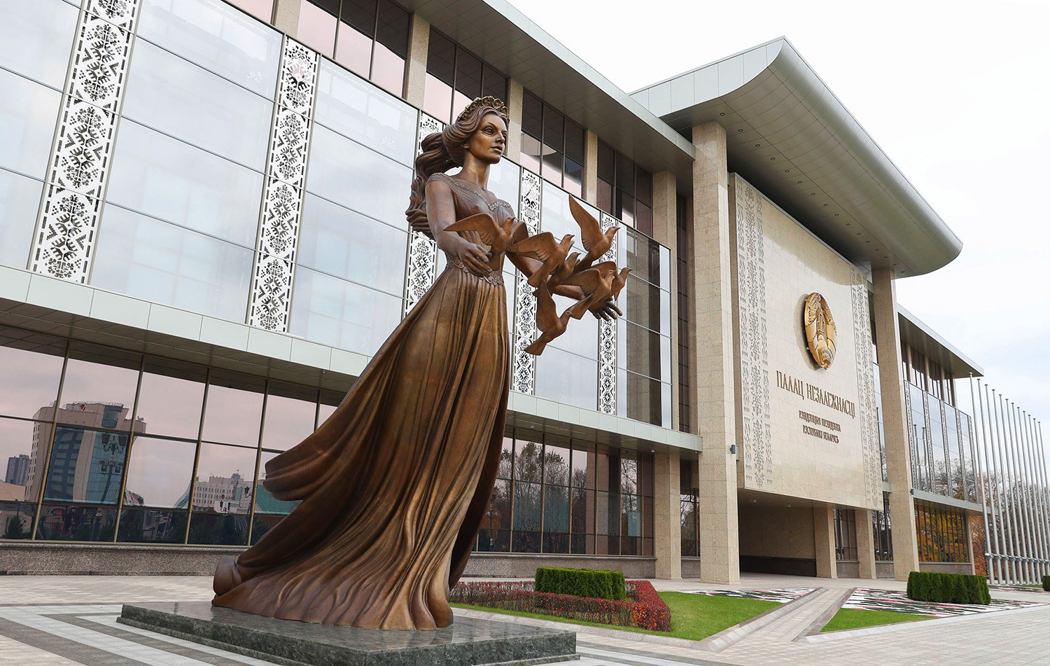 Минский международный выставочный центр в микрорайоне Северный Берег выбран для выставки неслучайно. Это современная площадка, у которой нет аналогов в Беларуси по возможностям своей трансформации, инновационности, гибкости и мобильности. Футуристическое здание построено с отсылкой к одному из самых узнаваемых символов нашей страны — аисту. В основе концепции — образ крыльев птицы в полёте. Фасад украшает национальный орнамент.